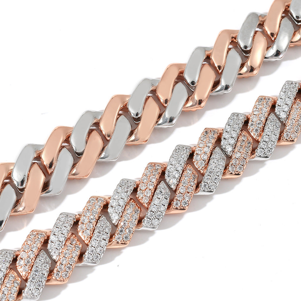 Rose Gold Two-Tone Brass-Inlaid Zircon Clavicle Chain Necklace