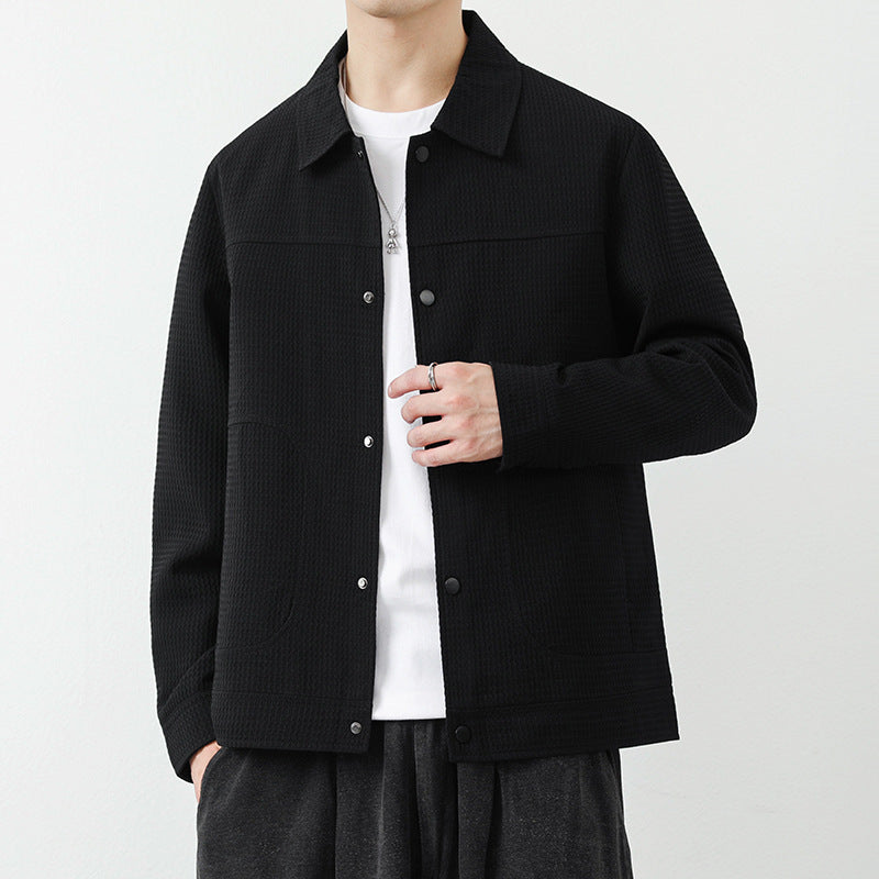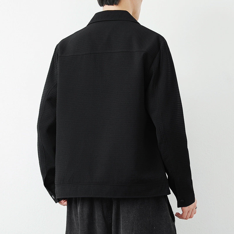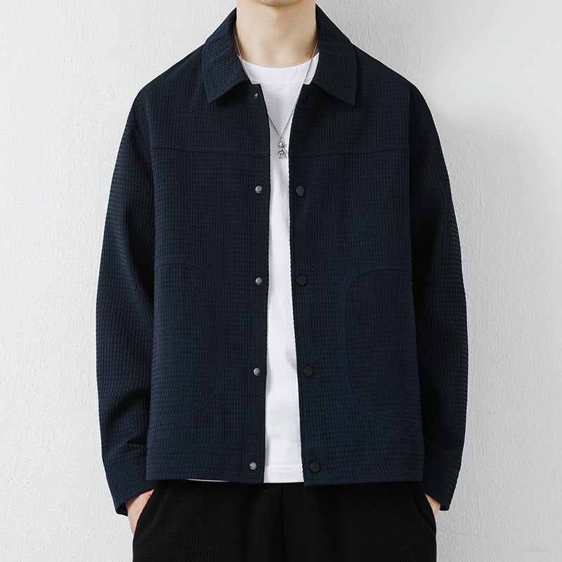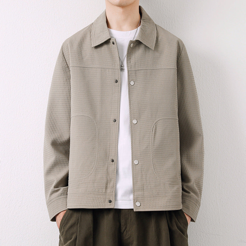 Men's Casual Button-Up Jacket - Minimalist Waffle Texture Design