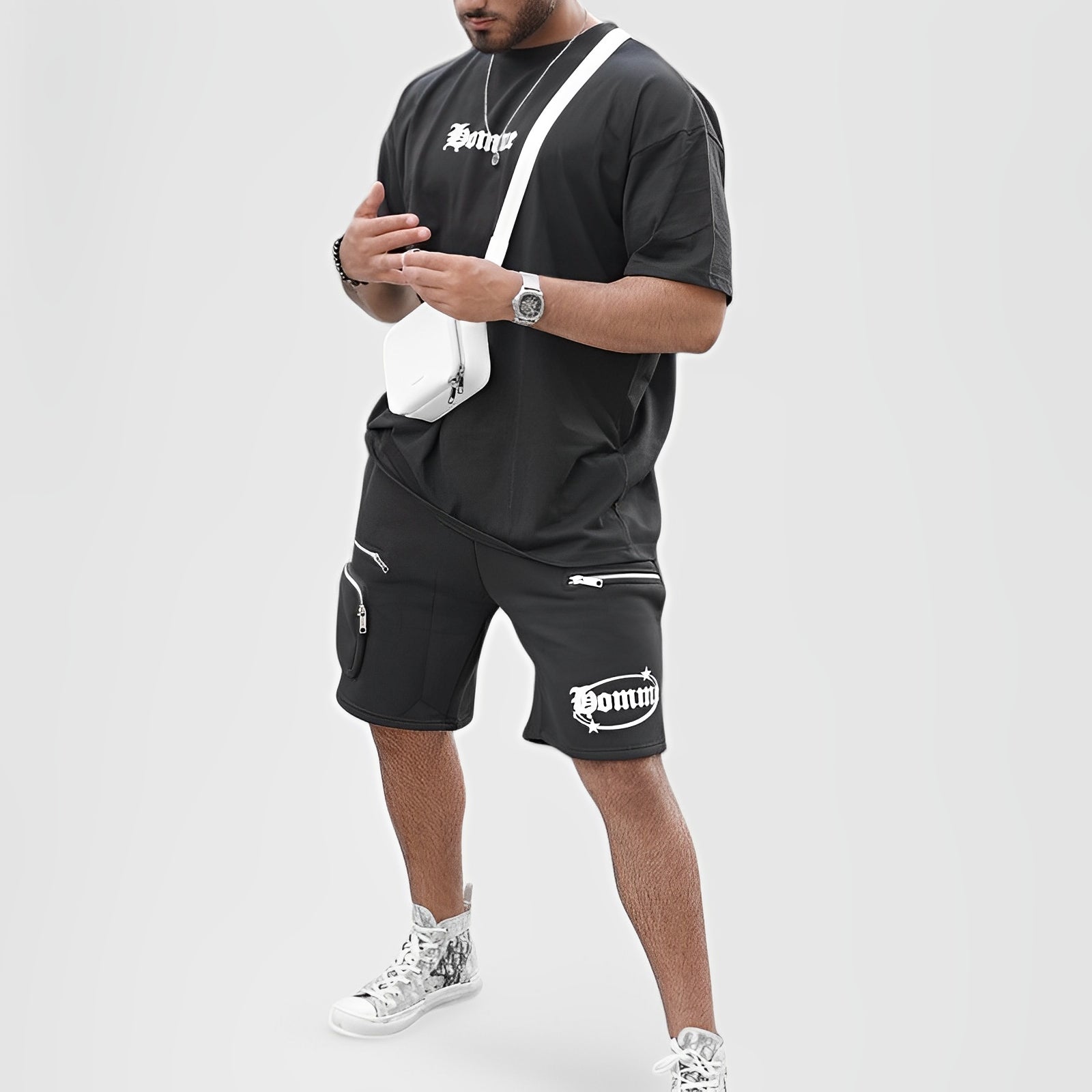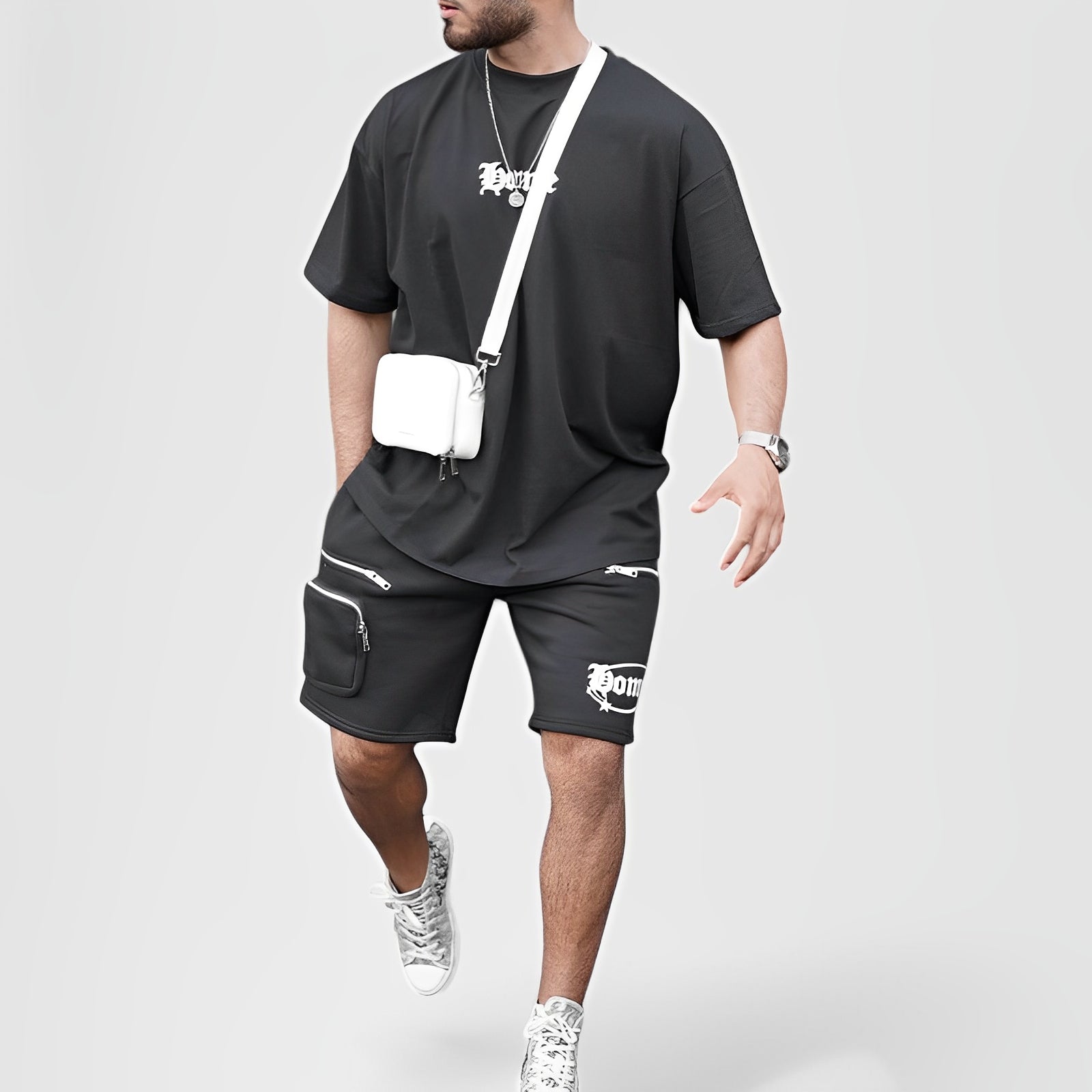 Men's Streetwear Two-Piece Set – Oversized Tee & Zipper Shorts