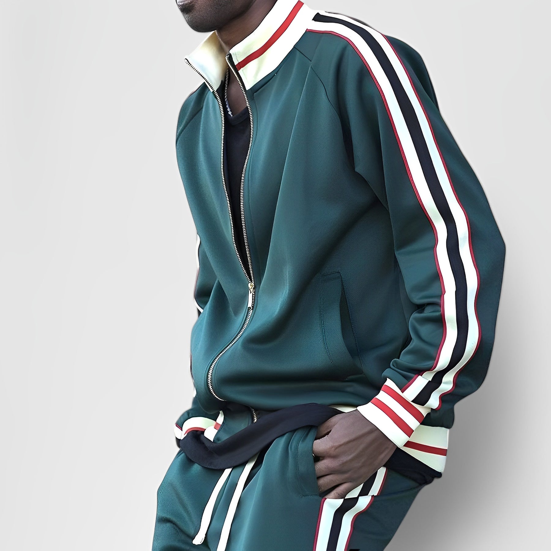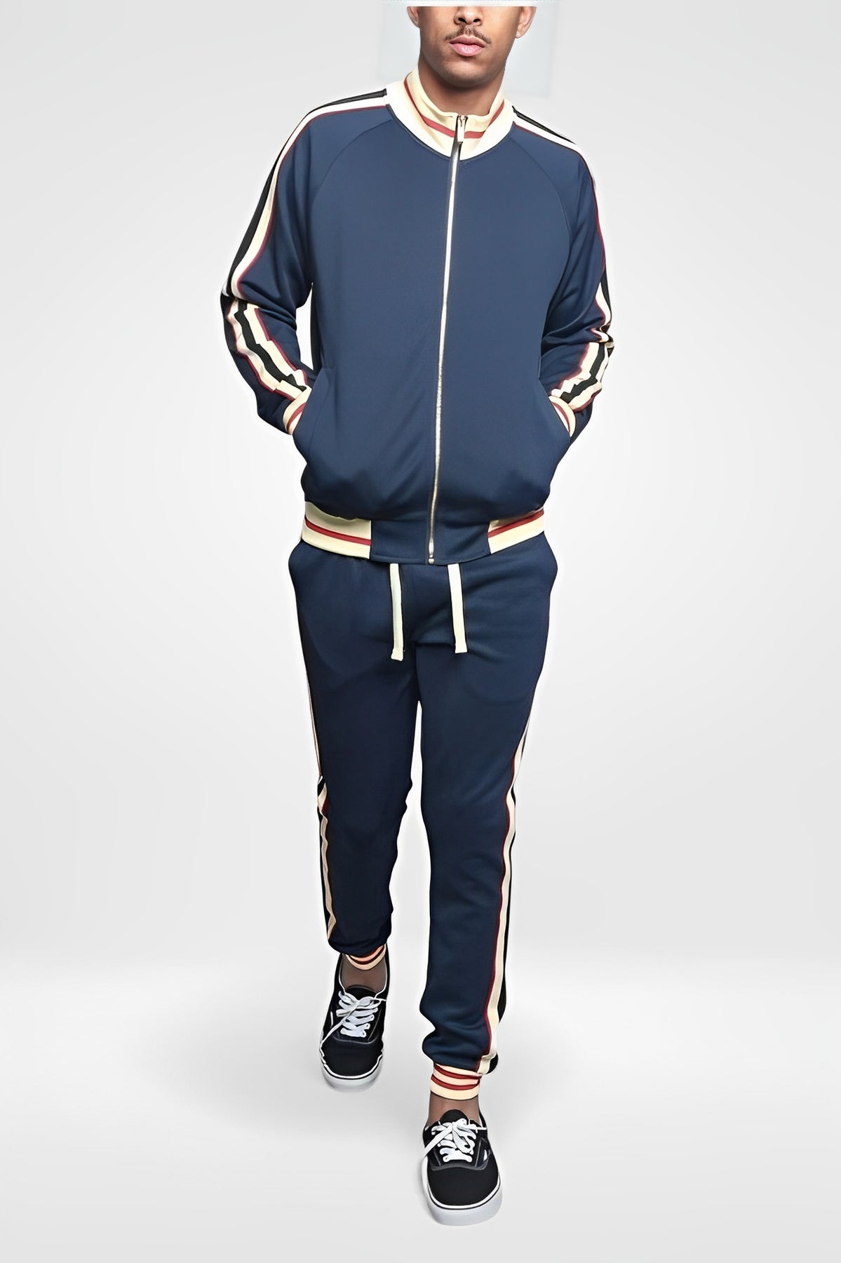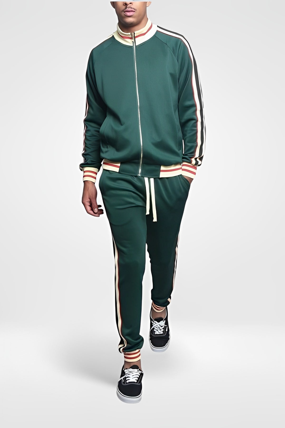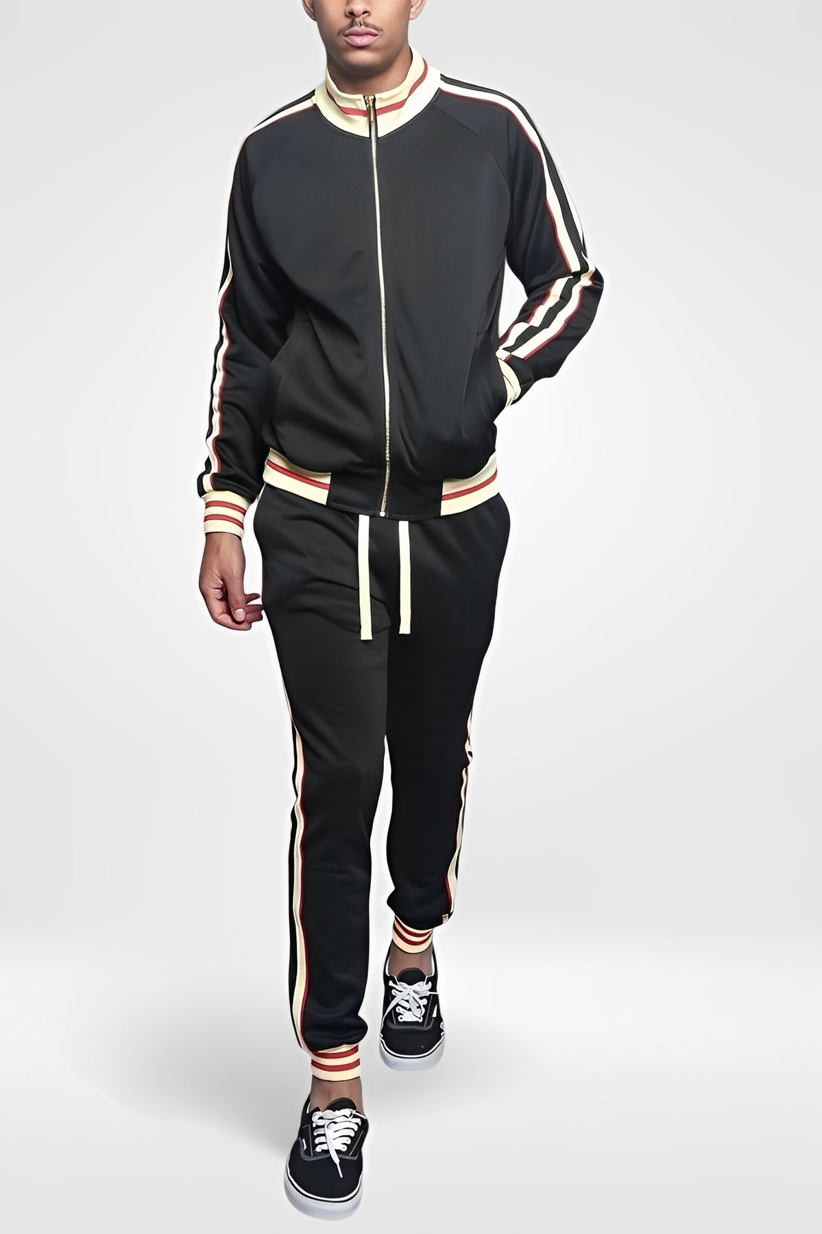 Men's Retro Track Suit - Striped Zip-Up Slim Fit Jacket & Joggers Set