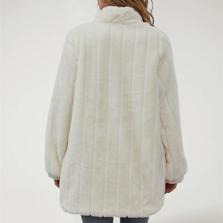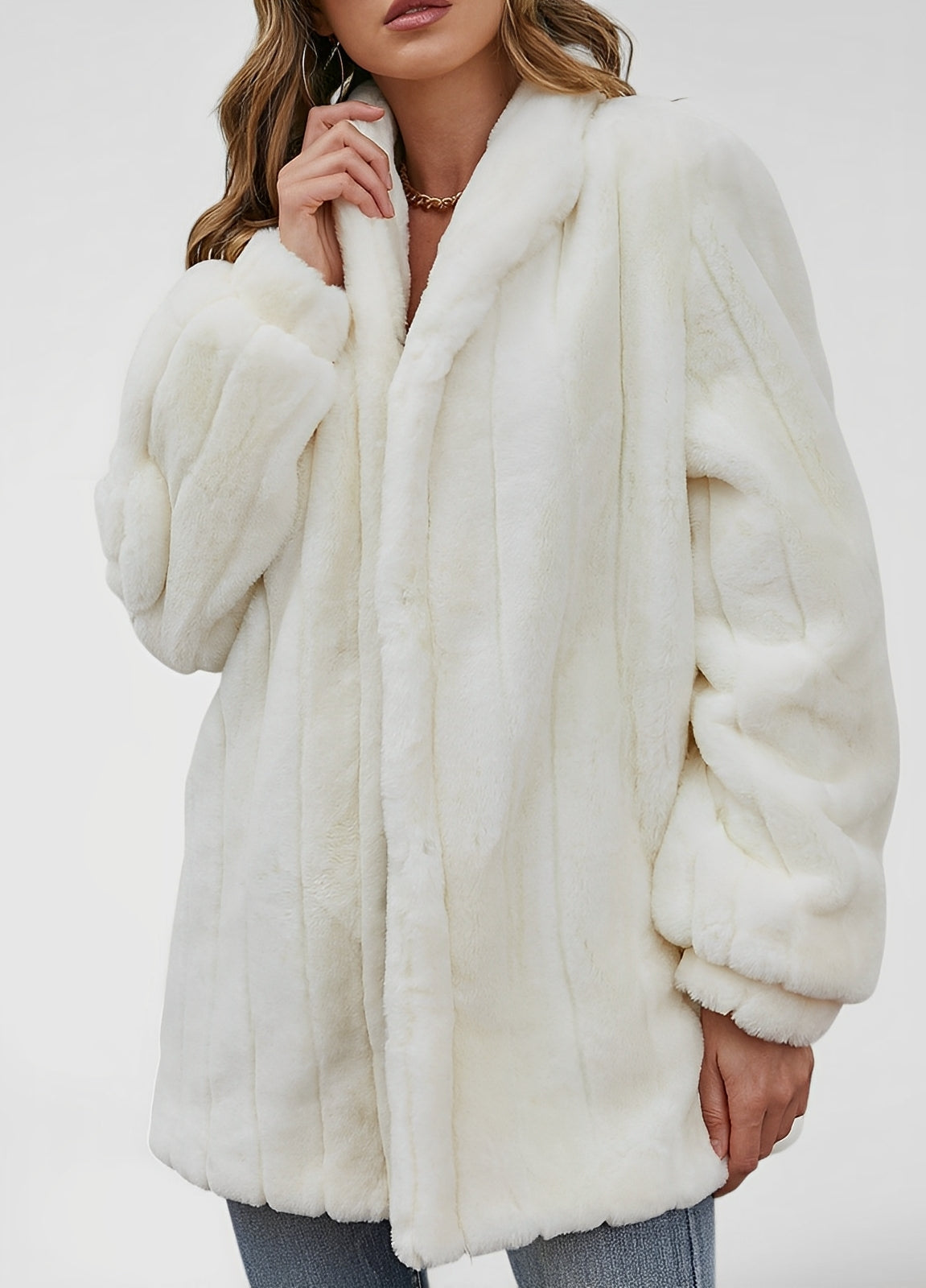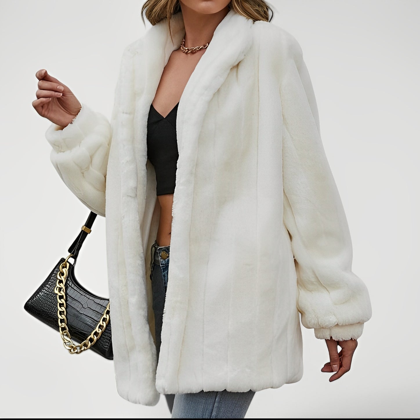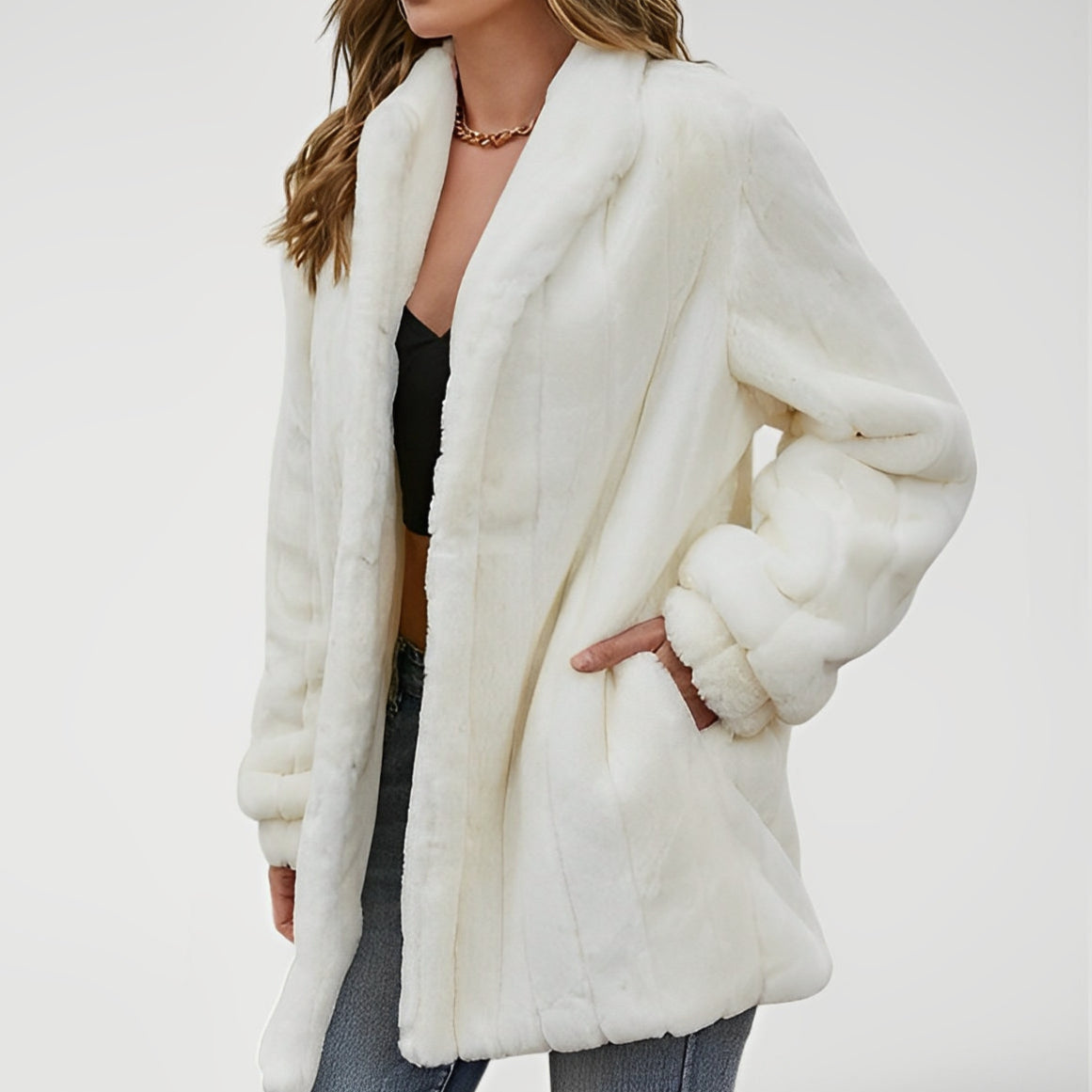 Luxury Faux Fur Coat – Elegant Oversized Floral Jacket