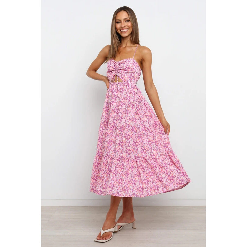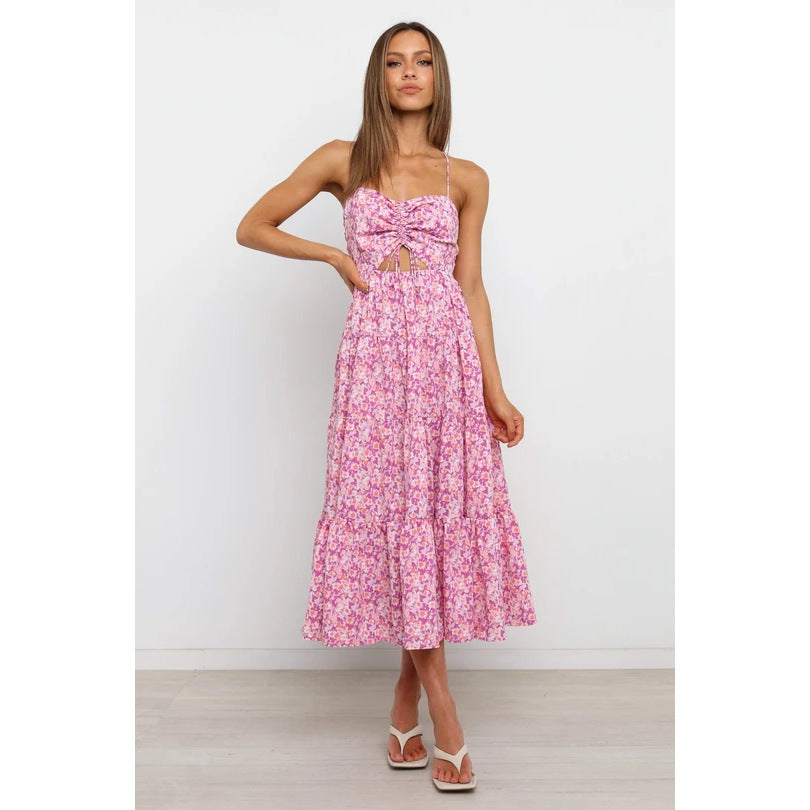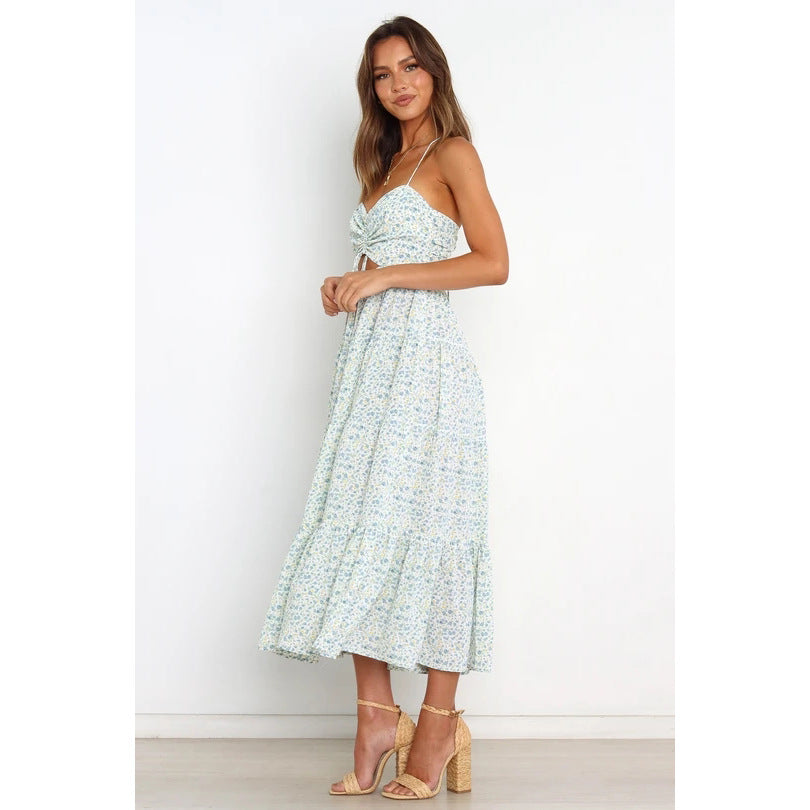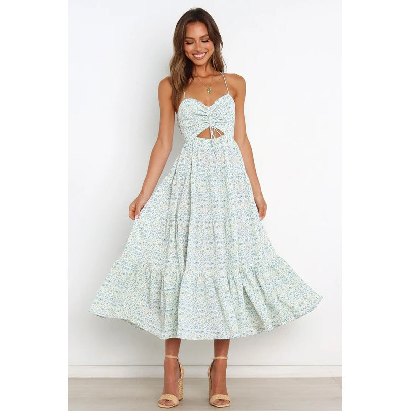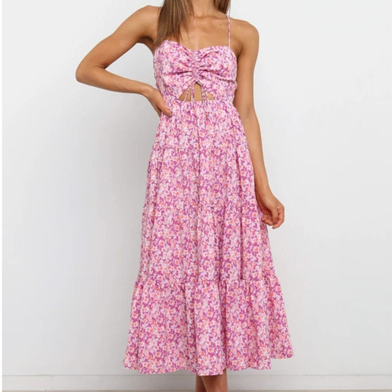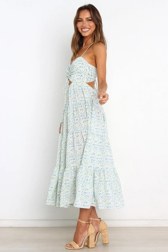 FLEUR – Bloemige Maxi Jurk met Cut-Out en Klassieke bandjes