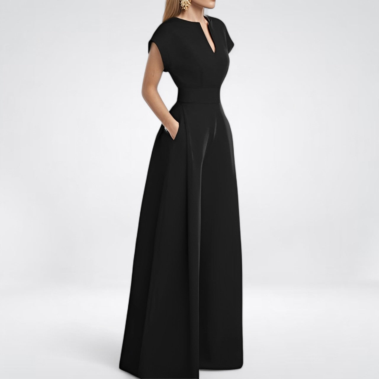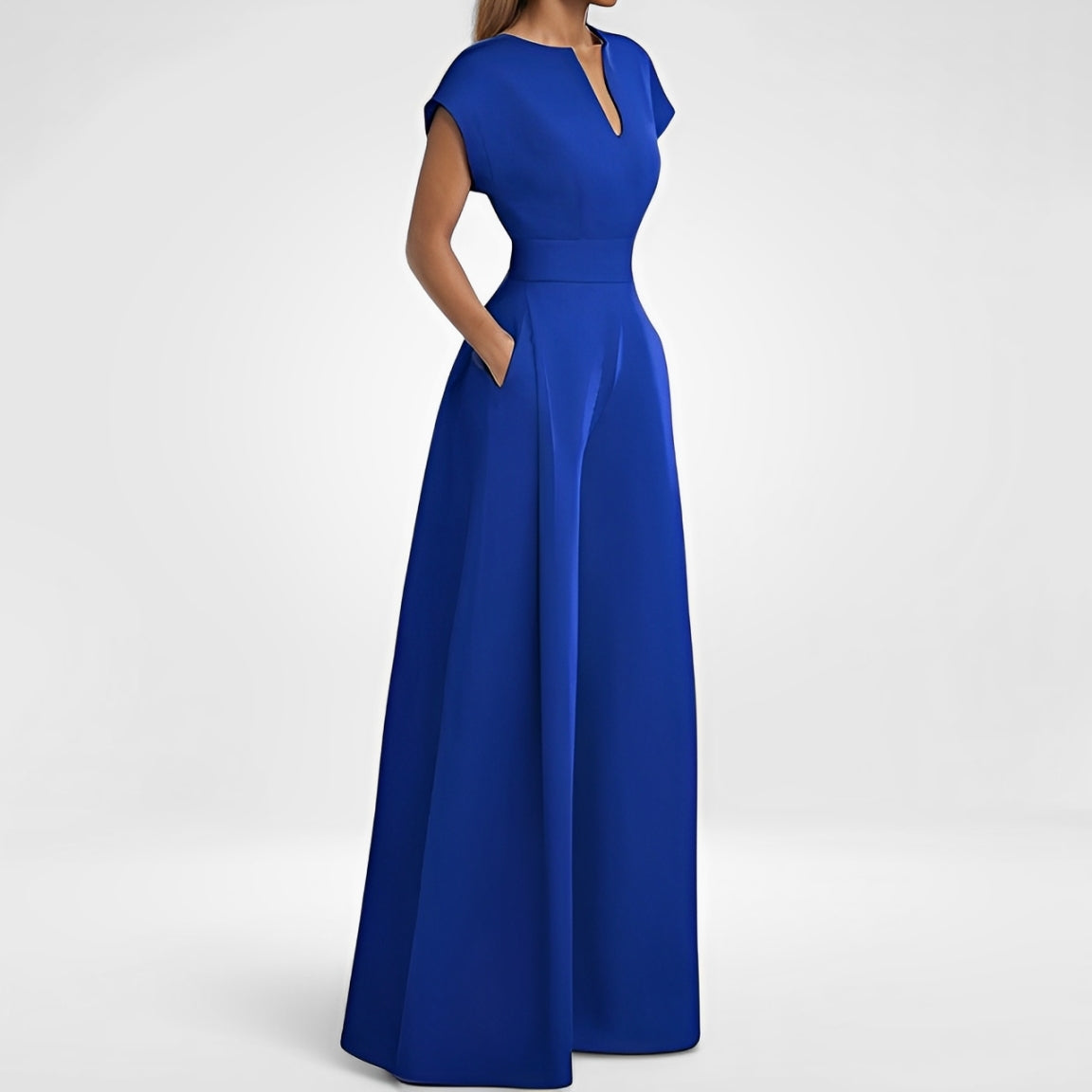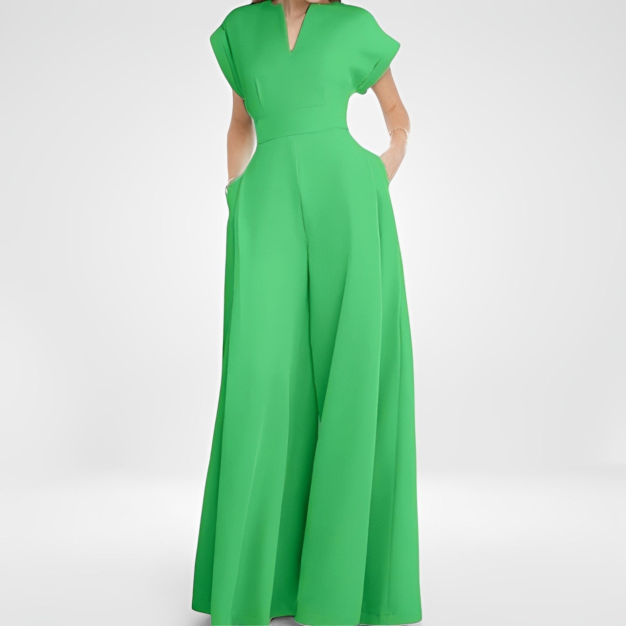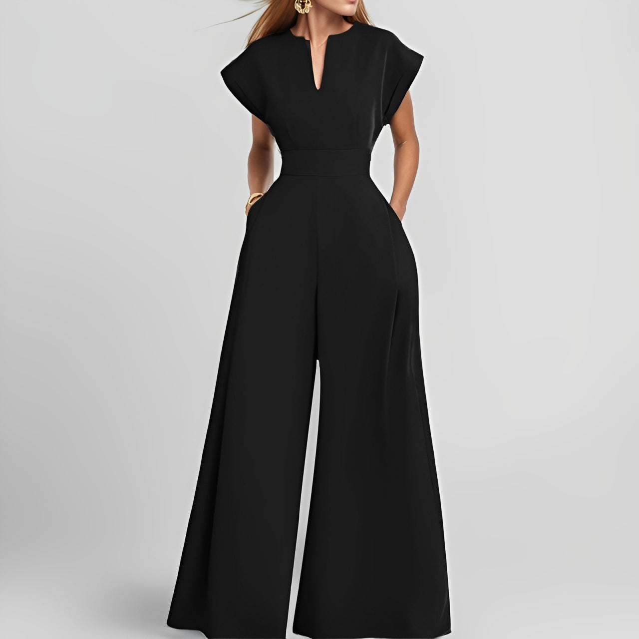Women's Elegant Solid Color And V-neck Sleeveless Waist Wide-leg Jumpsuit