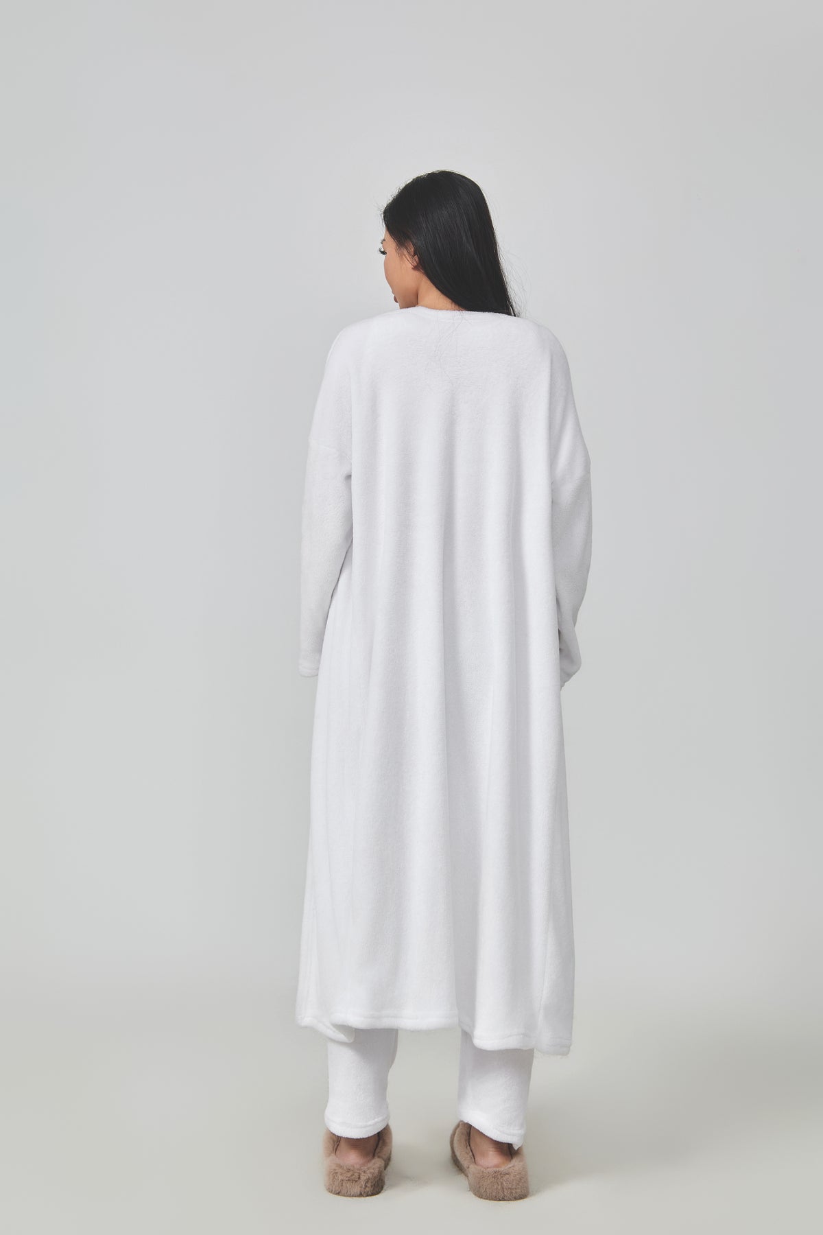 Stay cozy in style with this 3-piece velvet loungewear set featuring a soft longline cardigan, a cropped top, and relaxed-fit pants. Designed for ultimate comfort and effortless elegance at home.