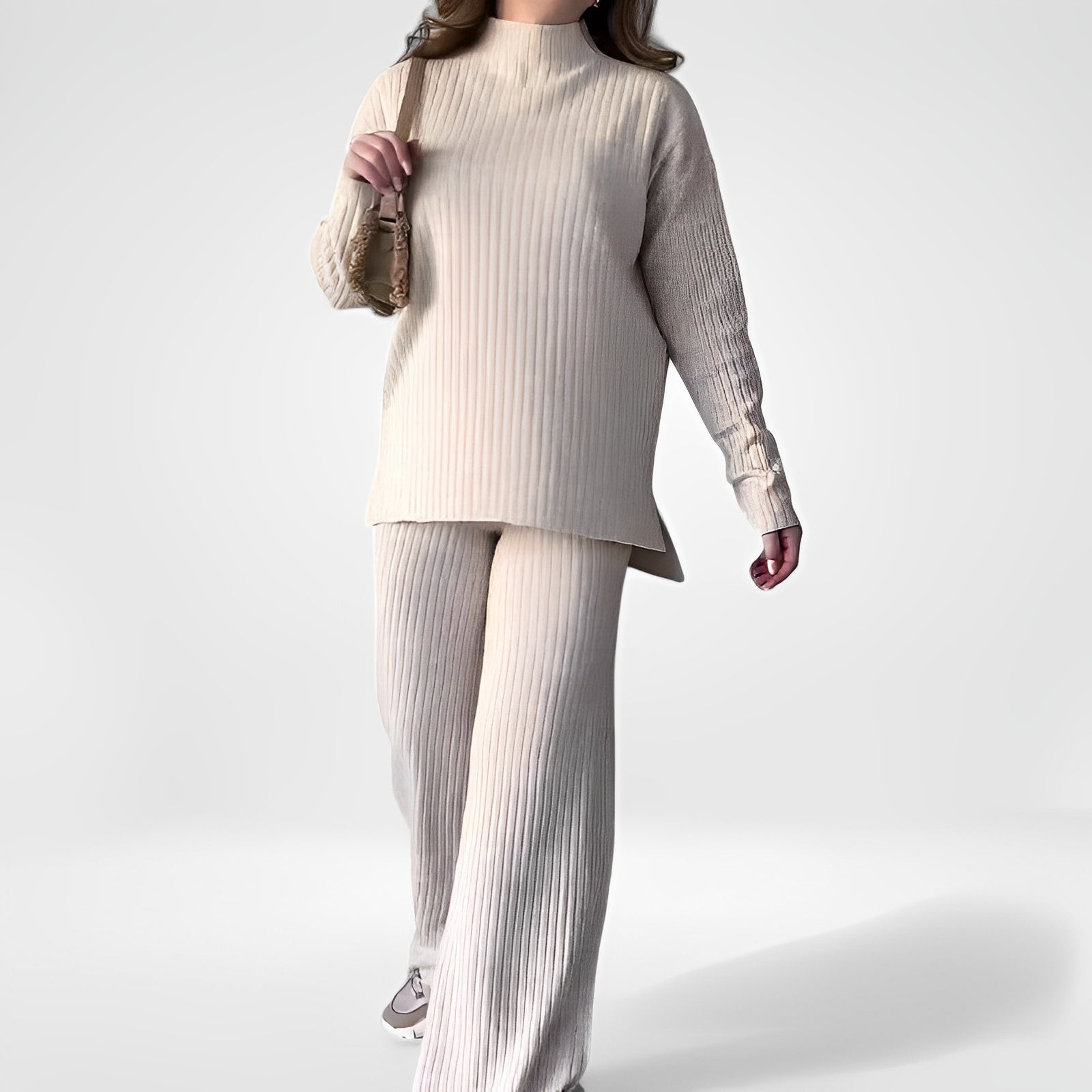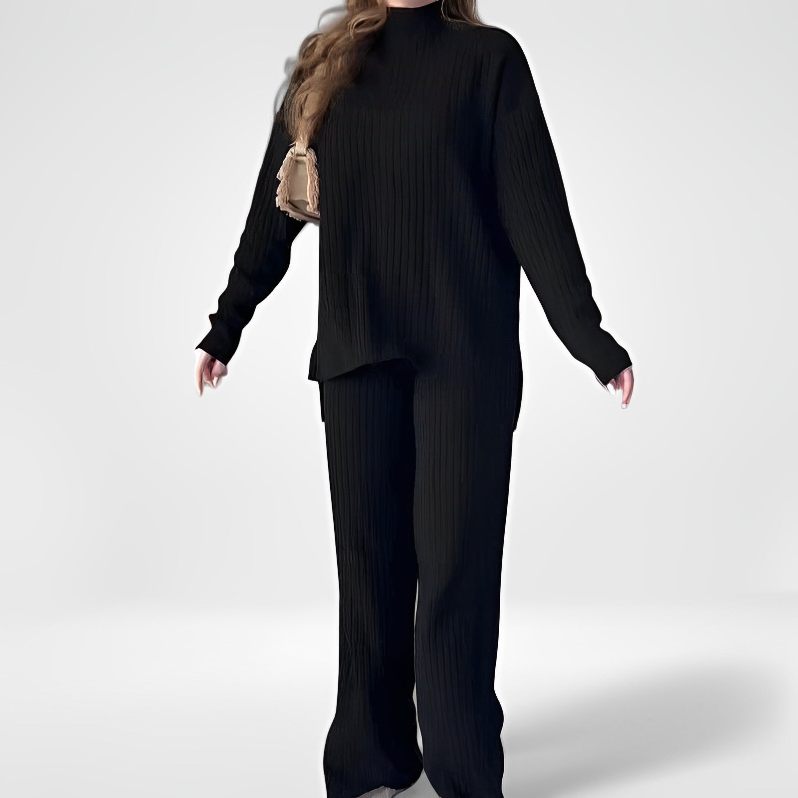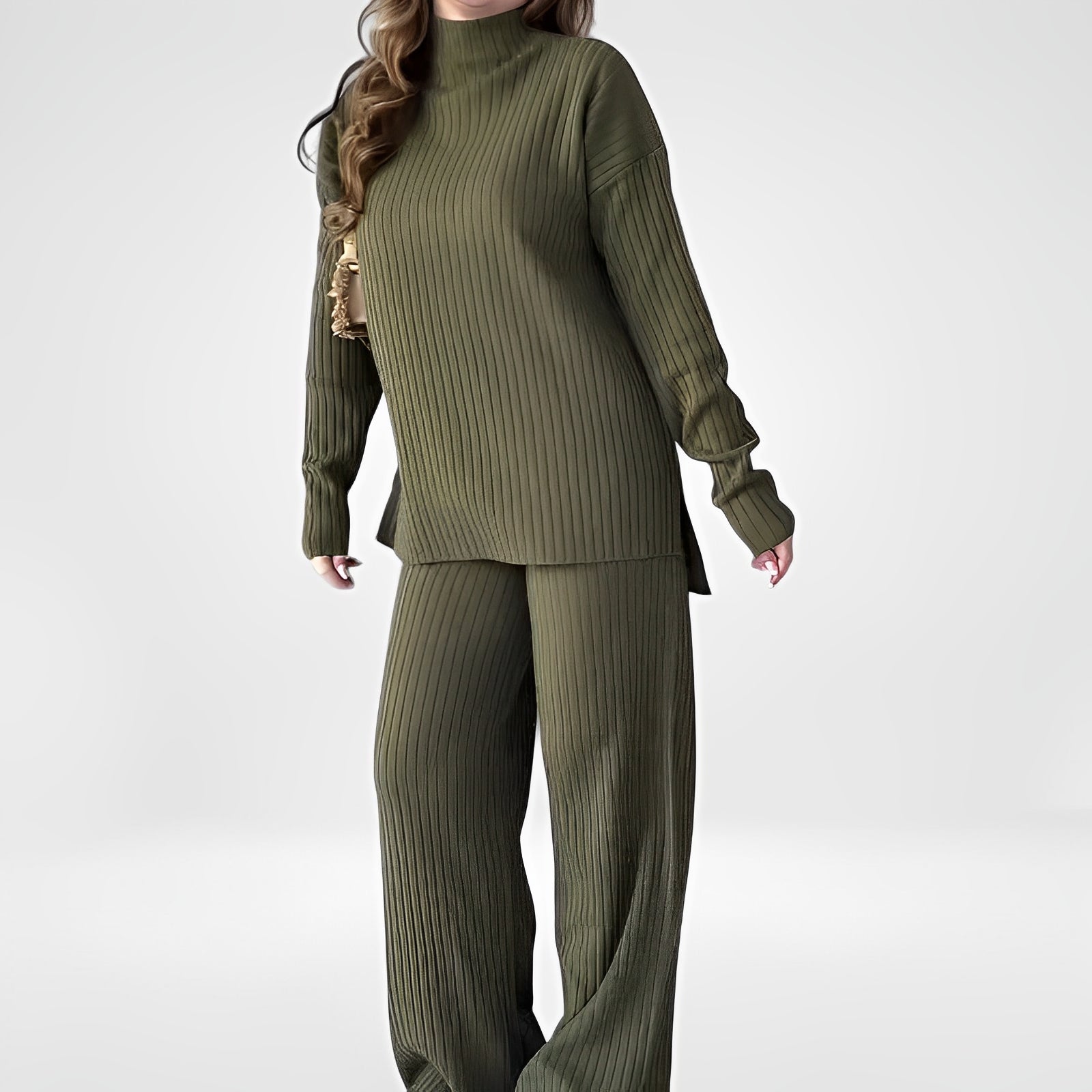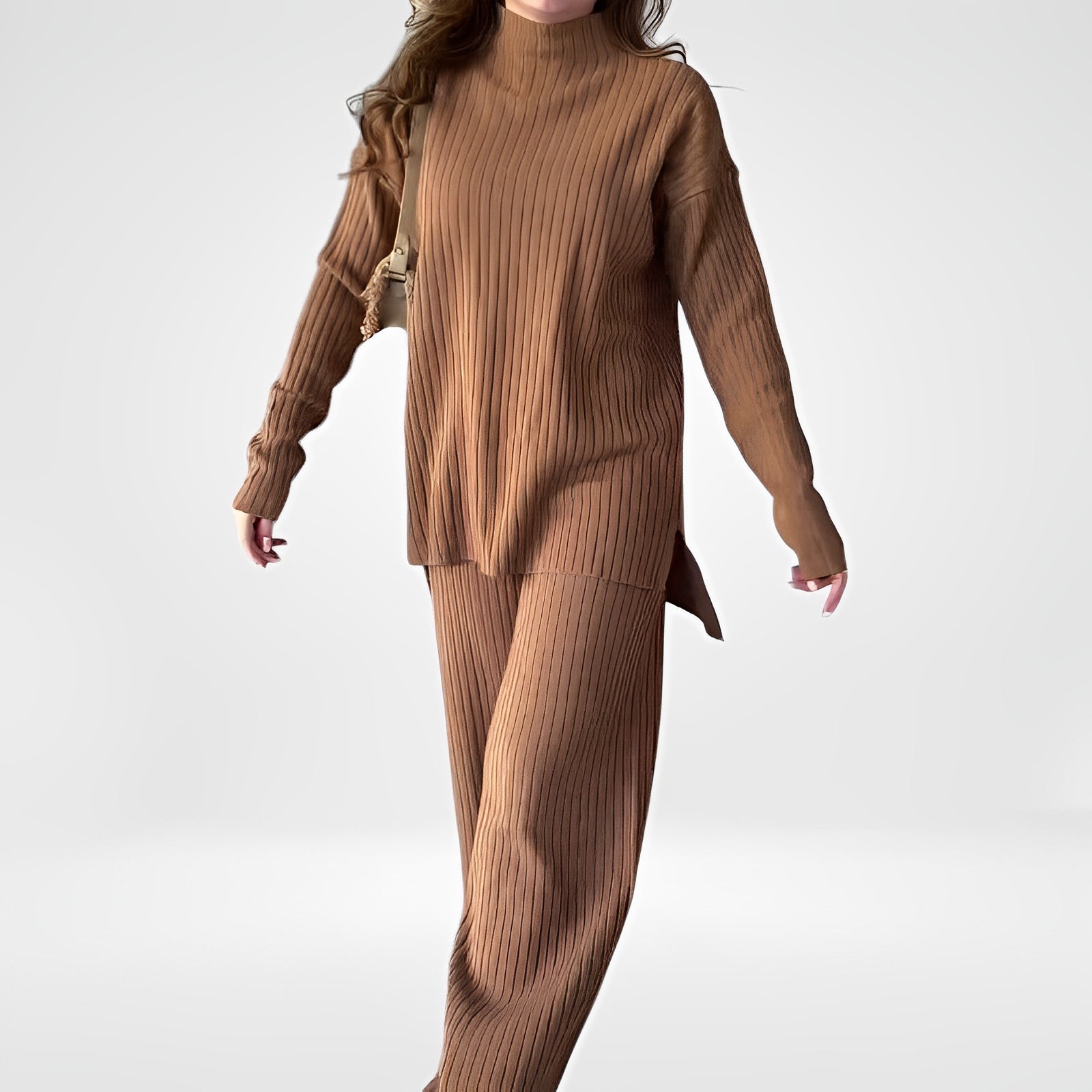 Crew Neck Knitwear Set - Wide-Leg Pants Two-Piece Casual Outfit