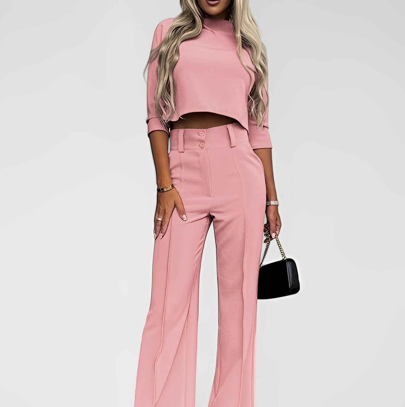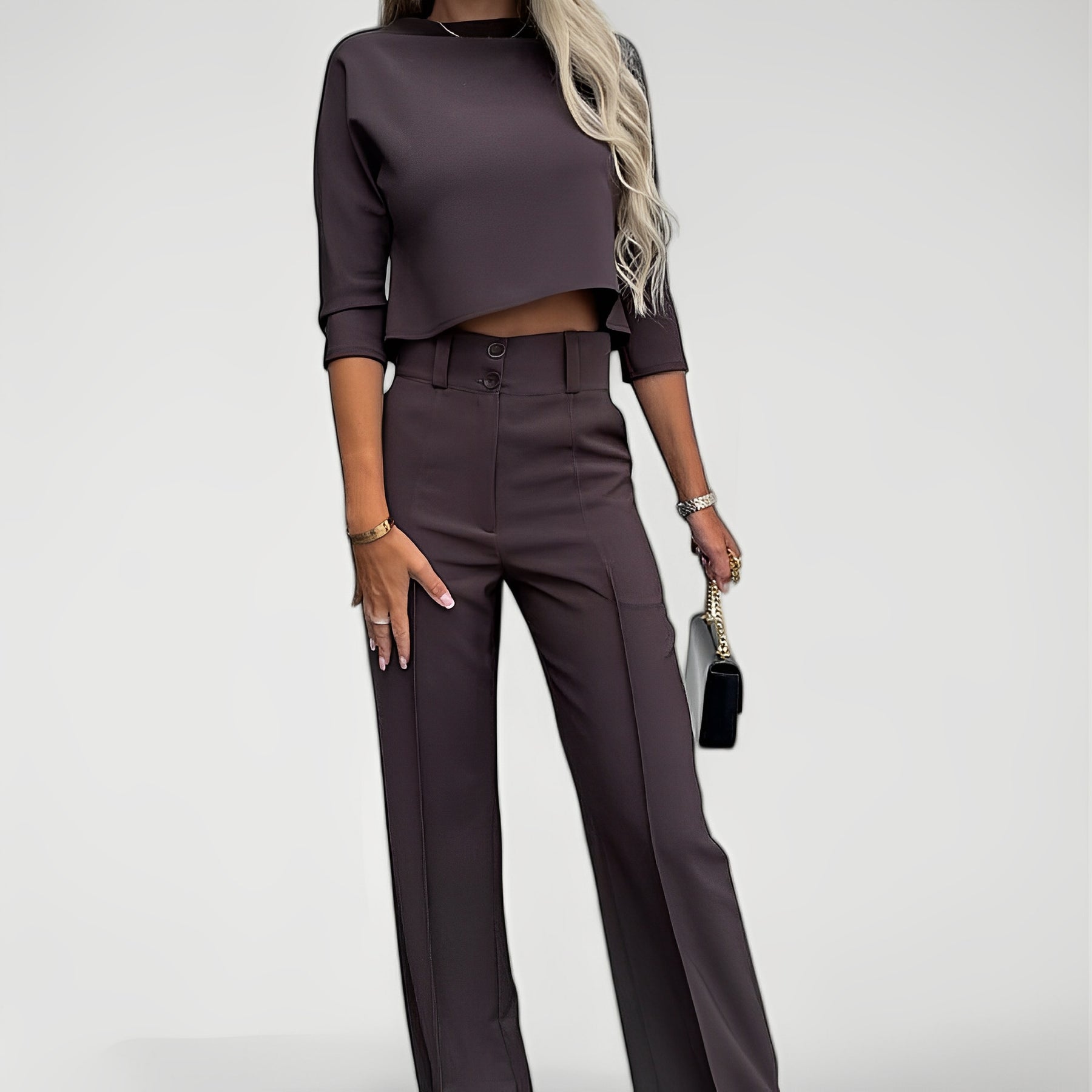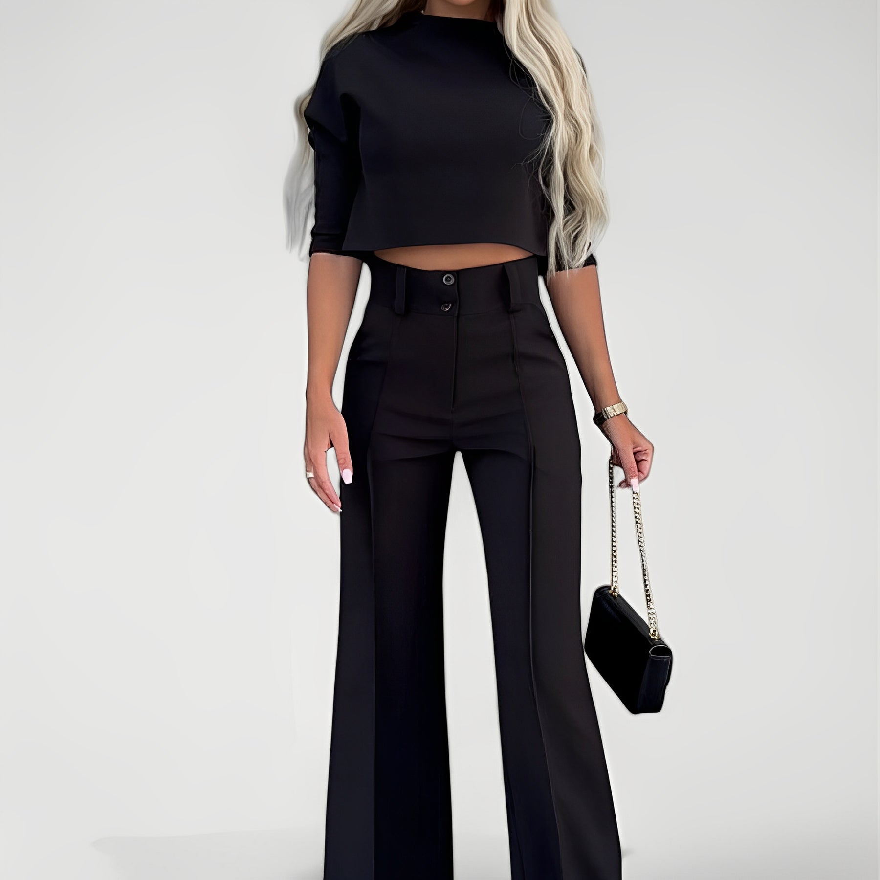 Elegant Women's Two-Piece Suit - Chic Crop Top & Wide-Leg Pants Set