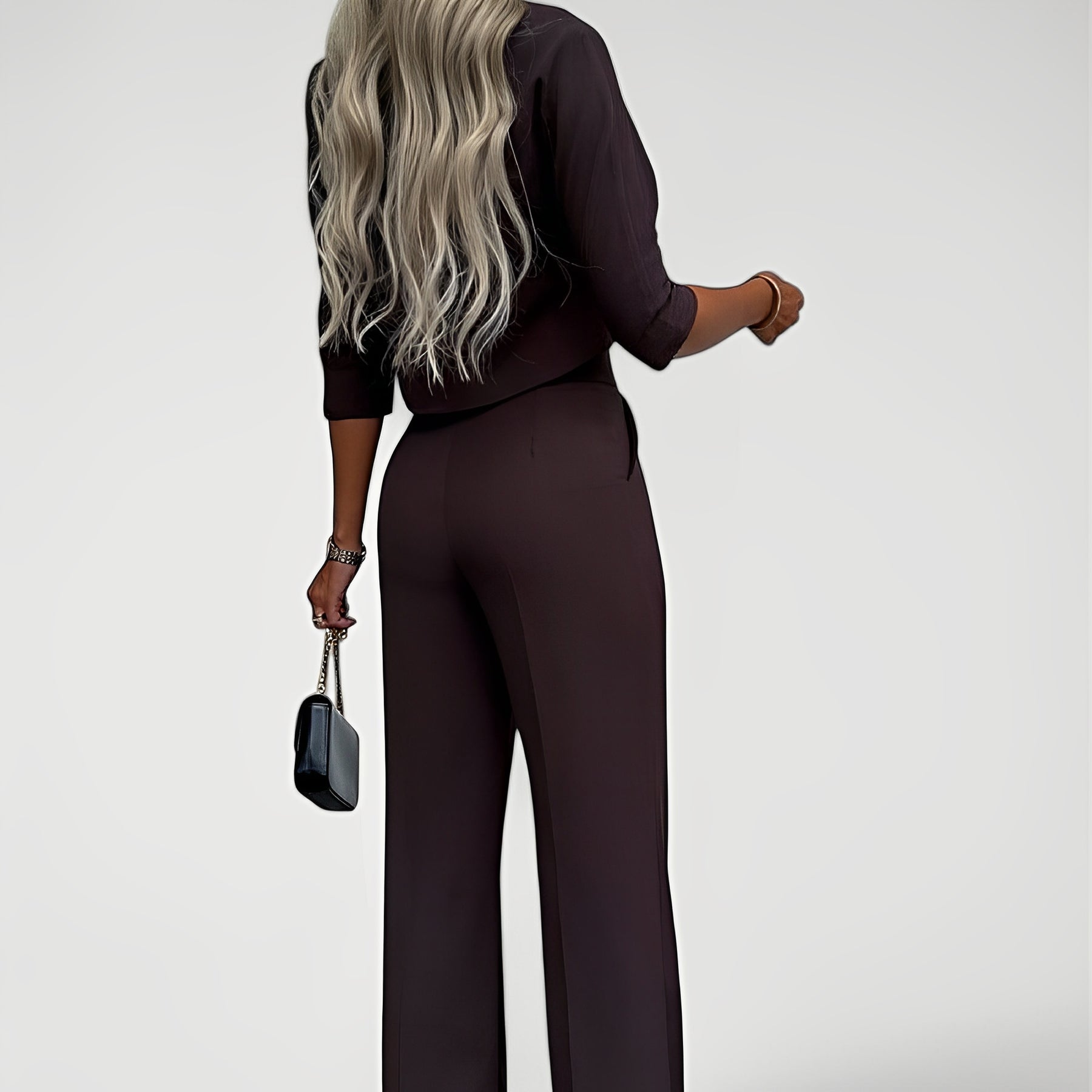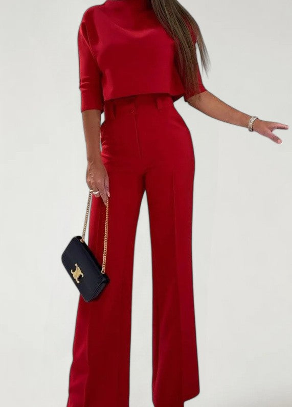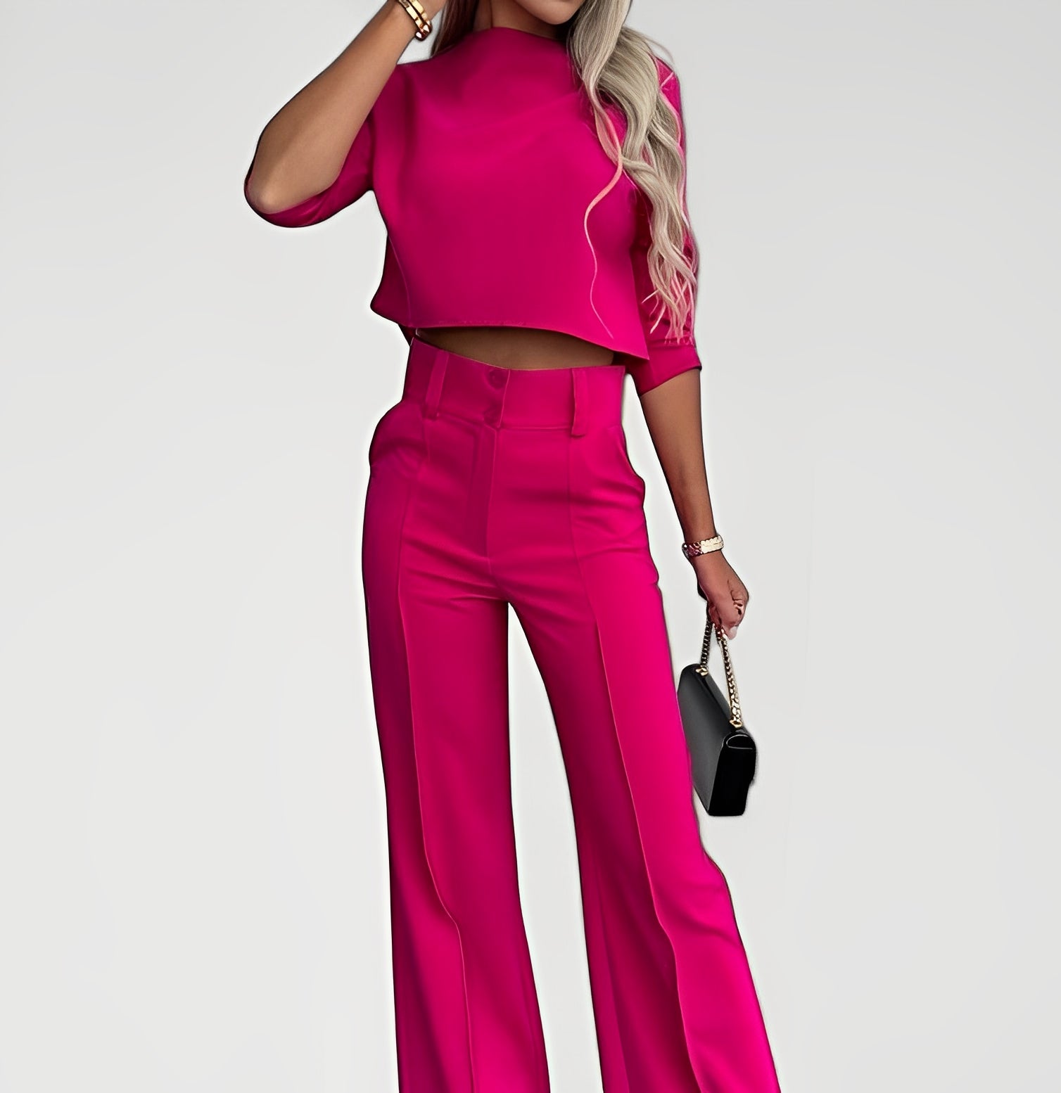 Elegant Women's Two-Piece Suit - Chic Crop Top & Wide-Leg Pants Set