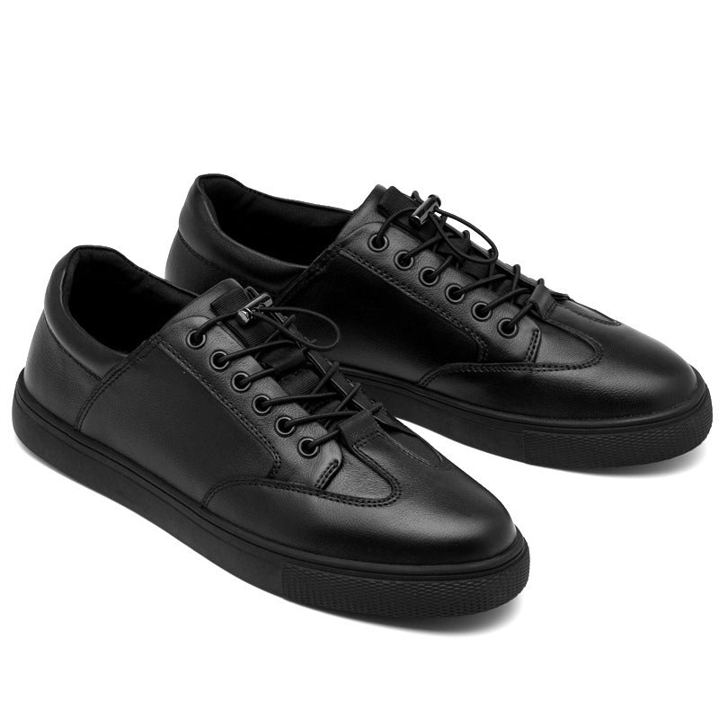 All-Black Leather Low-Top Sneakers – Sleek Urban Essential