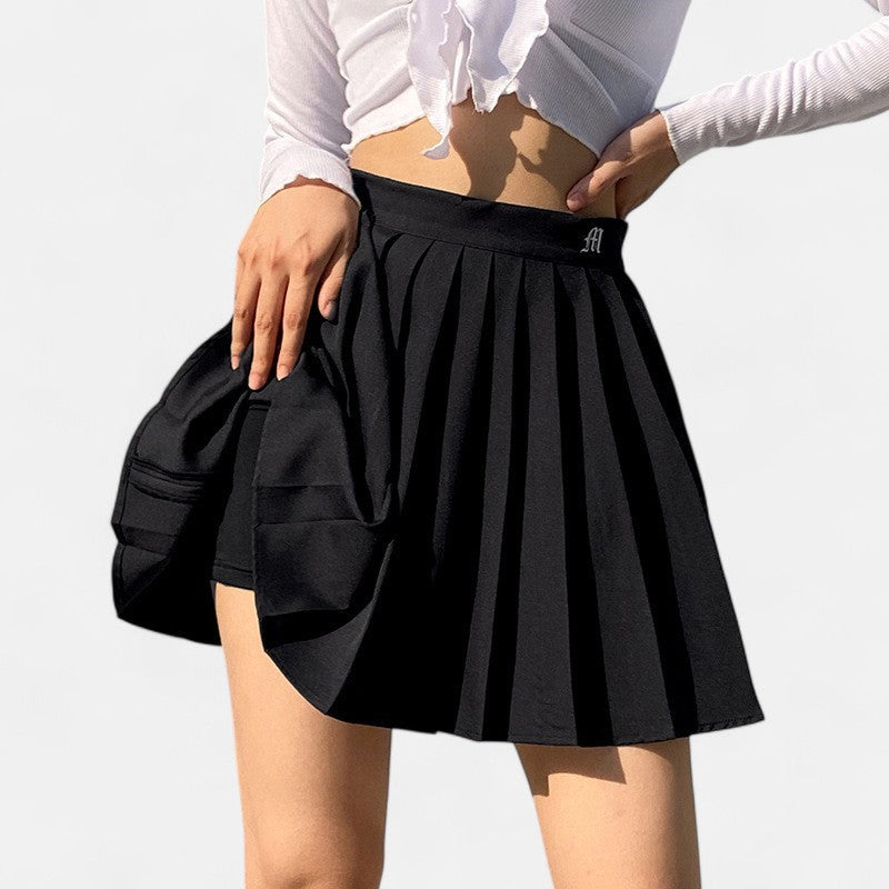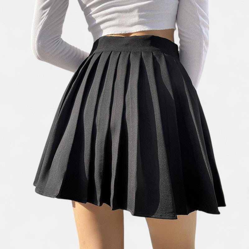 "High-Waisted Pleated Skirt with Built-In Shorts – Japanese School Style