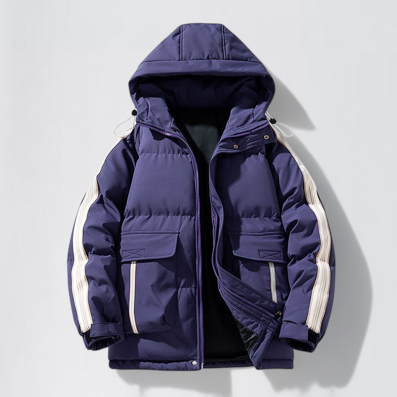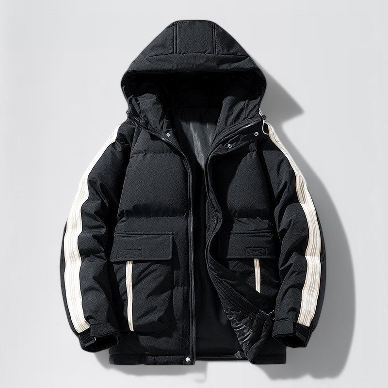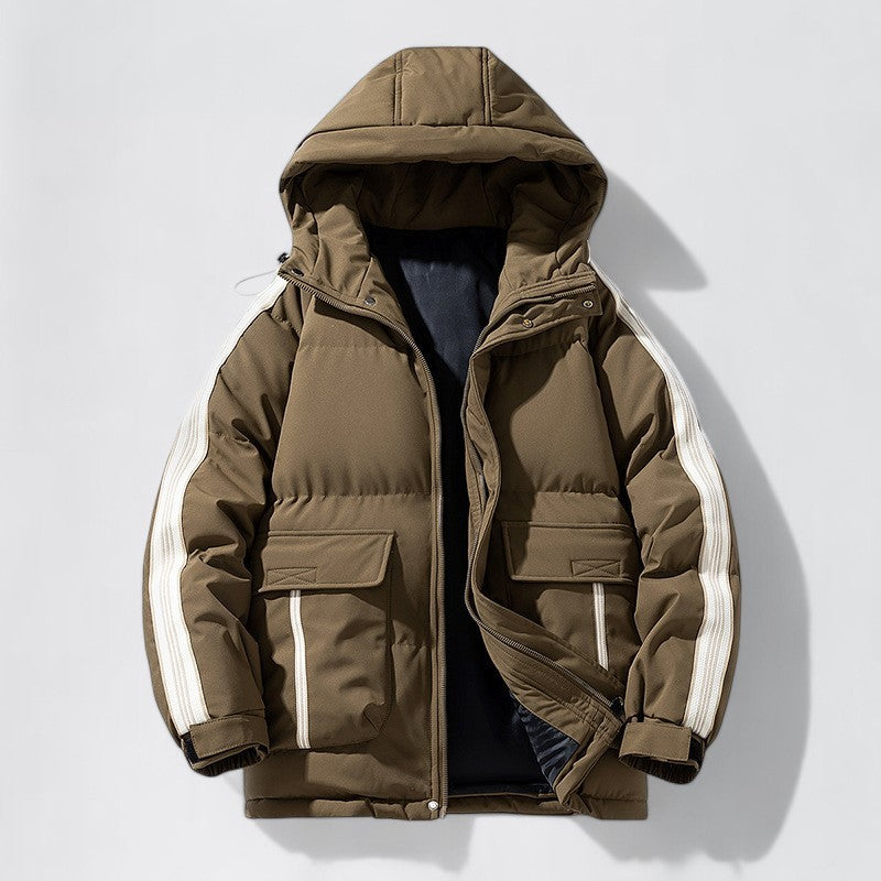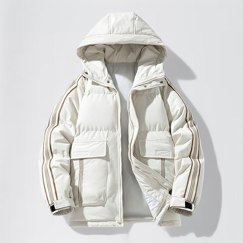 Men's Hooded Puffer Jacket - Striped Sleeve Winter Coat
